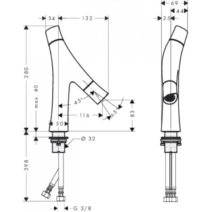 Axor Starck Organic Смеситель для раковины однорычажный на 1 отверстие с донным клапаном, цвет: хром 12011000