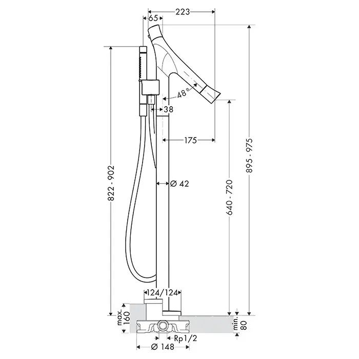 Axor Starck Organic Термостат для ванны напольный, с душем "палочка", цвет: шлиф. черный хром 12016340