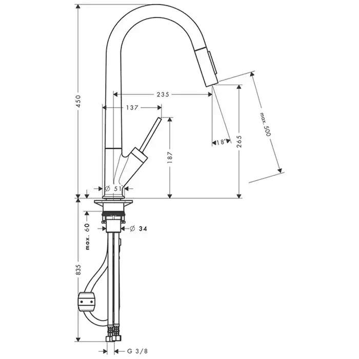 Axor Starck Смеситель для кухни с выдвижным изливом, на 1 отв., 2 режима струи, цвет: нерж. сталь 10821800