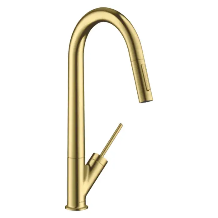 Axor Starck Смеситель для кухни с вытяжным изливом, однорычажный, цвет: шлифованная латунь 10821950