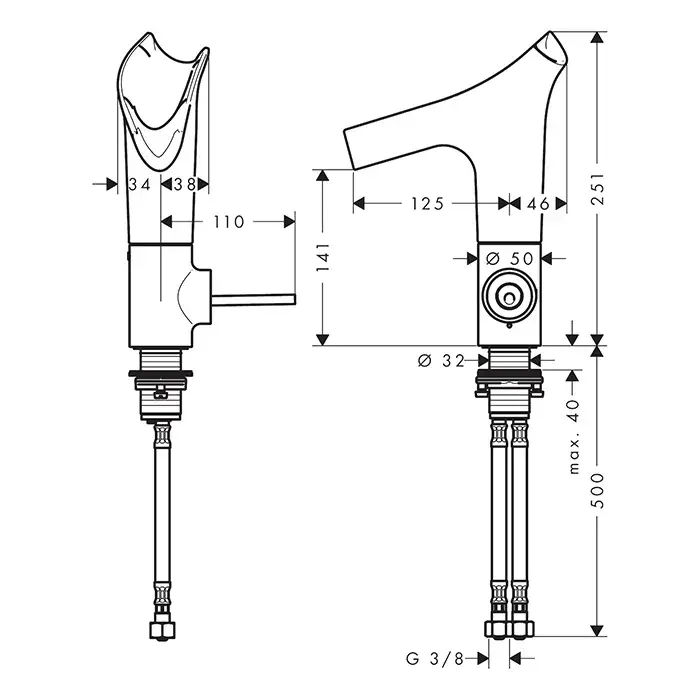Высота излива, см