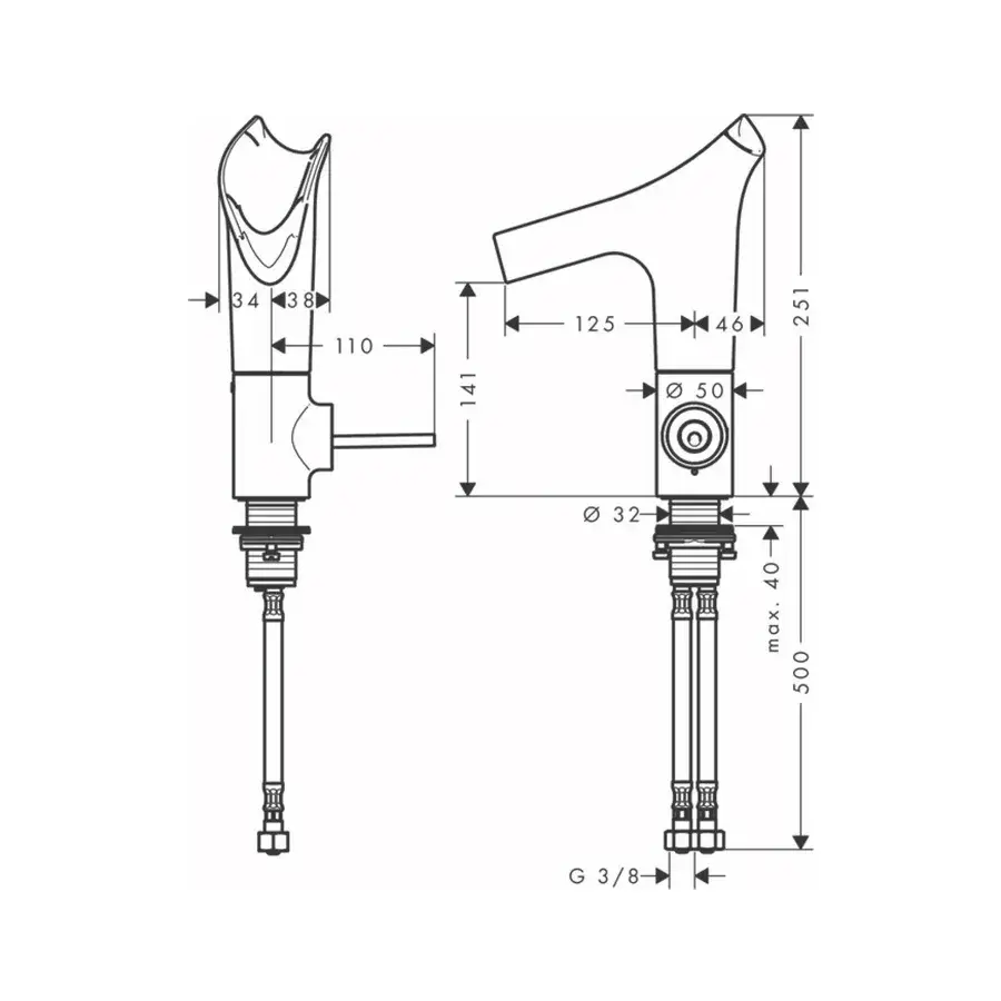 Axor Starck V Смеситель для раковины на 1 отверстие с донным клапаном, цвет: полирован. черный хром 12123330
