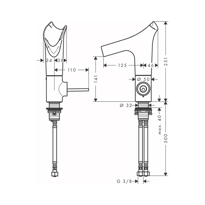 Высота излива, см