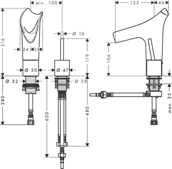 Высота излива, см