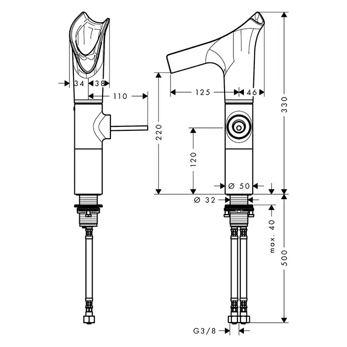 Axor Starck V Смеситель для раковины на 2 отверстия с донным клапаном, цвет: шлифованный черный хром 12115340