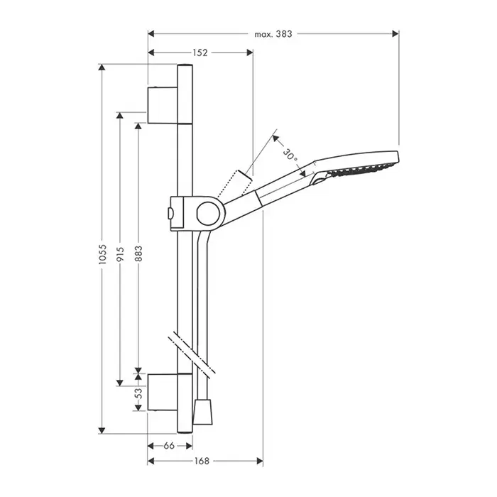Axor Uno Душевой гарнитур: ручной душ 3 вида струи, штанга 105 см, шланг 160 см, цвет: хром 27987000