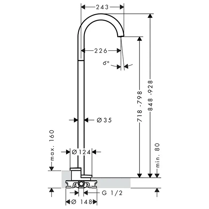Длина излива, см