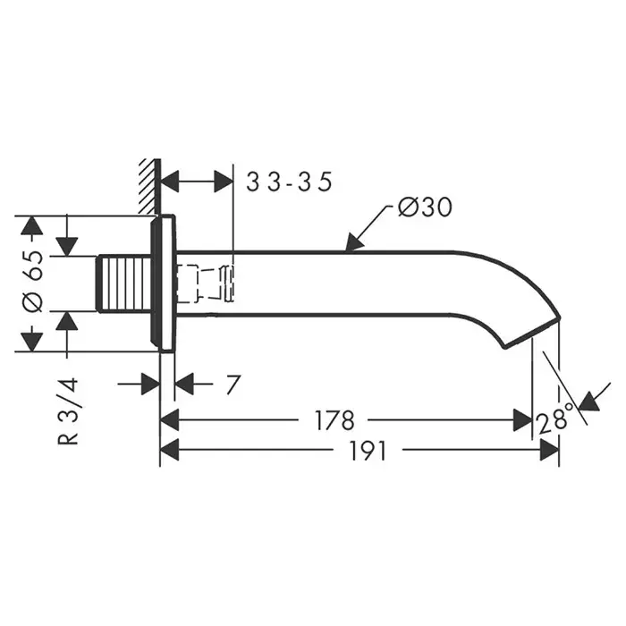 Axor Uno Излив настенный для ванны 17,8 см, цвет: шлифованный никель 38411820