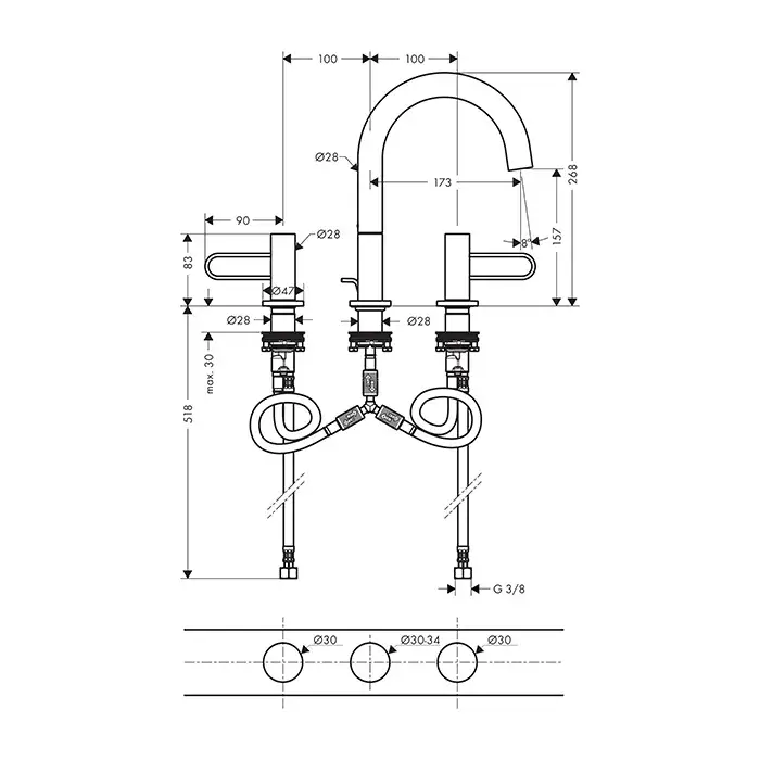 Axor Uno Смеситель для раковины на 3 отверстия с донным клапаном, цвет: шлифованное розовое золото 38054310