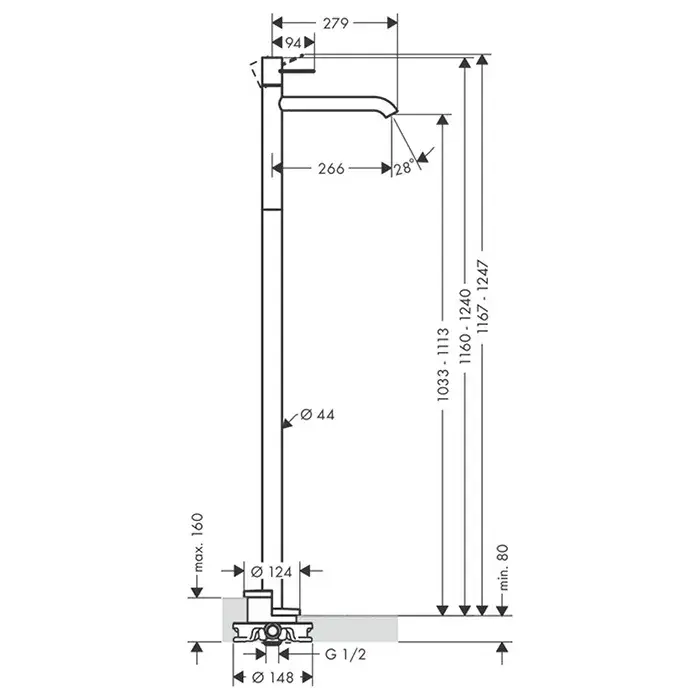 Высота излива, см