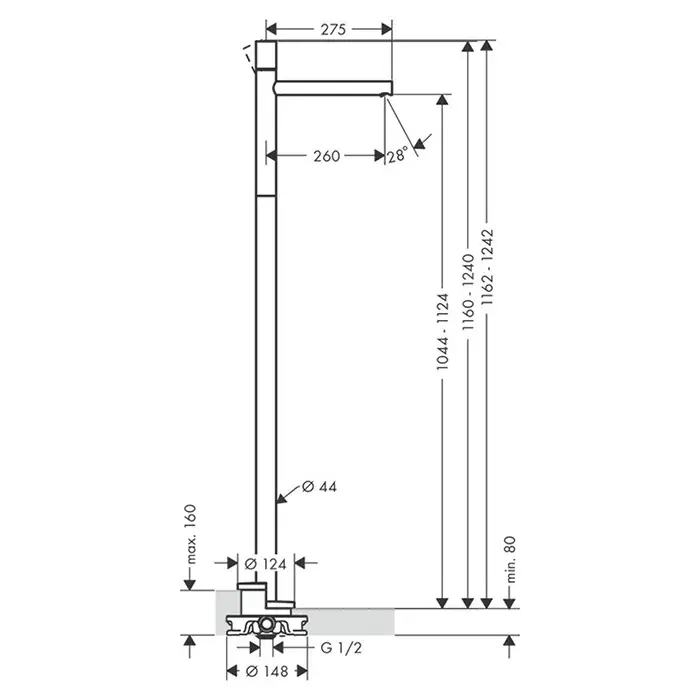 Axor Uno Смеситель для раковины напольный, внешняя часть, с рукояткой zero, цвет: шлиф. никель 45037820