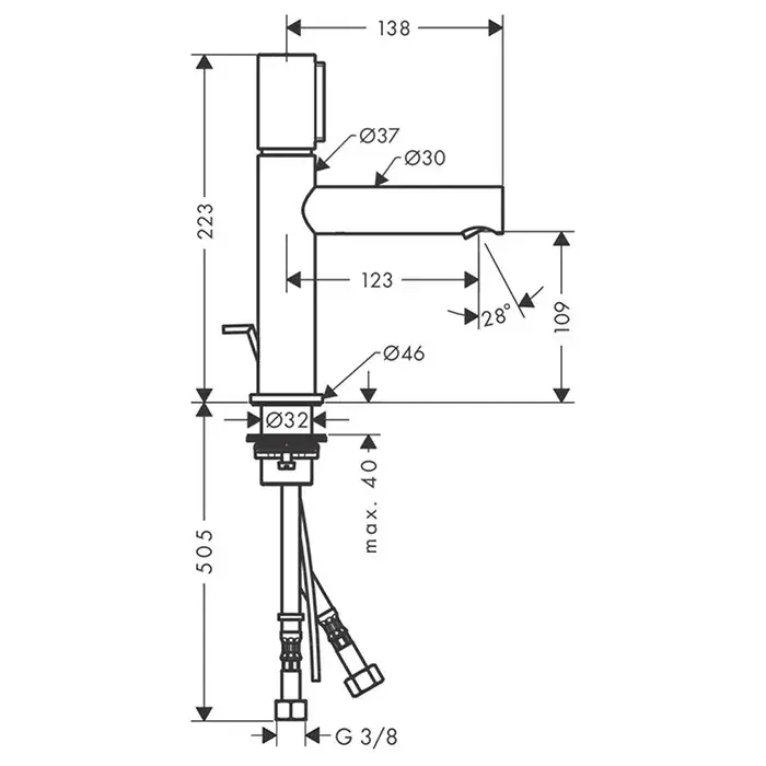 Высота излива, см