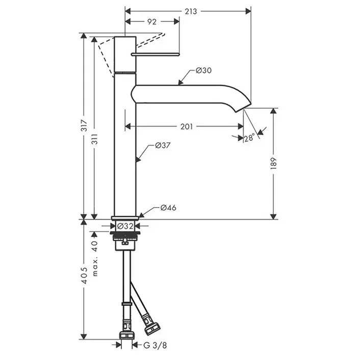 Axor Uno Смеситель для раковины высокий на 1 отверстие с донным клапаном, цвет: хром 38032000