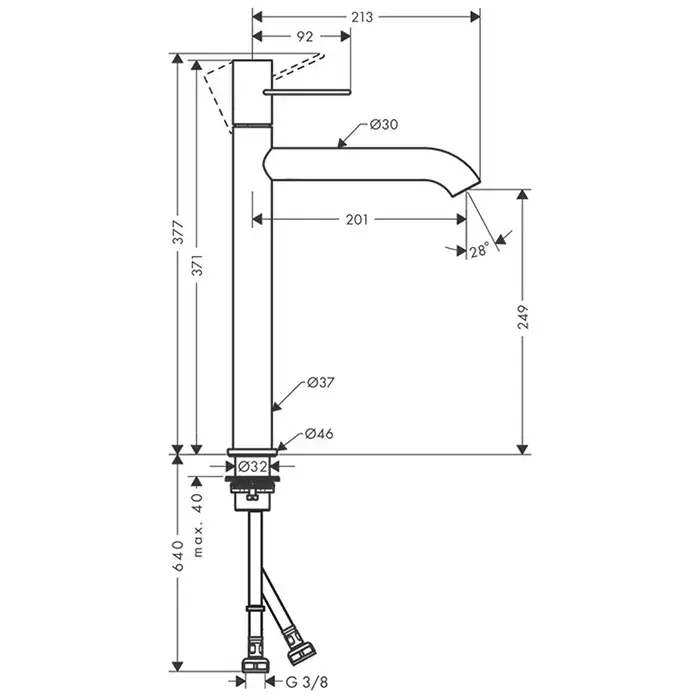 Axor Uno Смеситель для раковины высокий на 1 отверстие с донным клапаном, цвет: хром 38034000