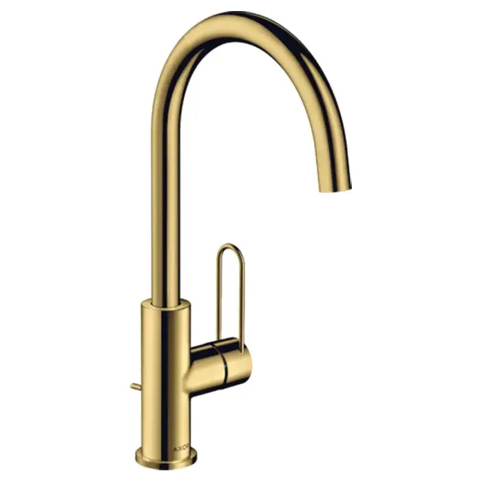 Axor Uno Смеситель для раковины высокий на 1 отверстие с донным клапаном, цвет: полированное золото 38036990