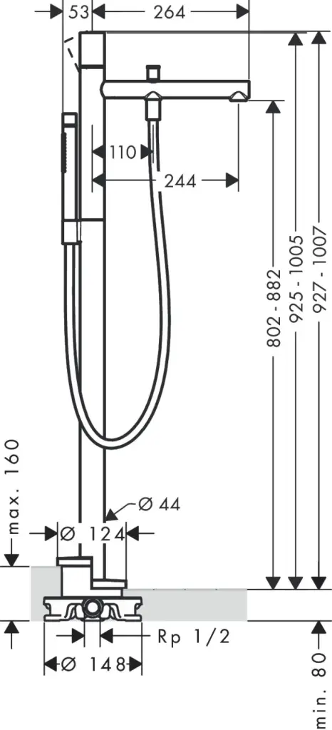 Высота излива, см