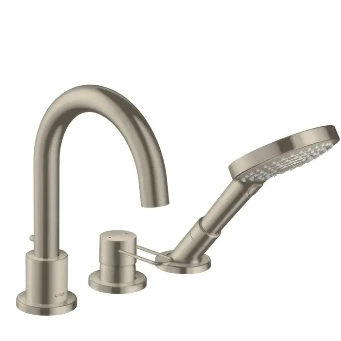 Axor Uno Смеситель на борт ванны, на 3 отв, с ручным душем, внешняя часть, цвет: шлифованный никель 38436820
