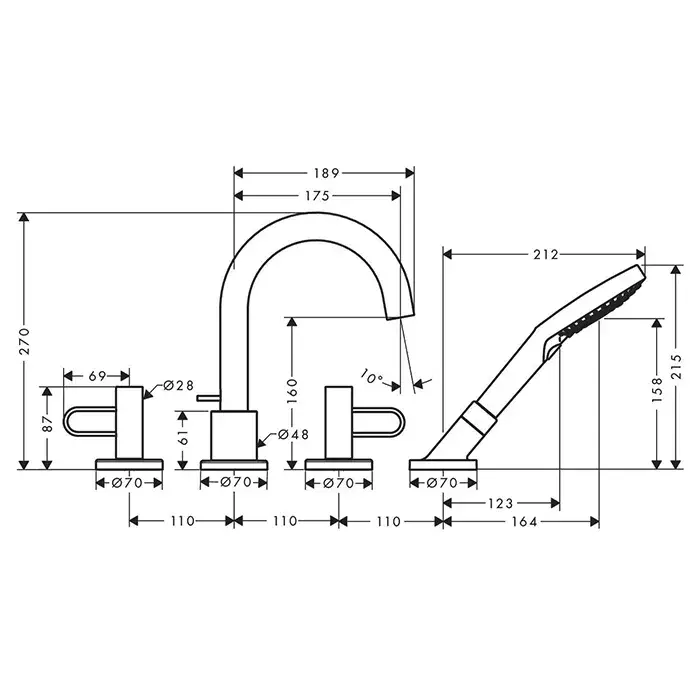 Axor Uno Смеситель на борт ванны, с ручным душем, внешняя часть, с рукоятками-петлями, цвет: хром 38445000