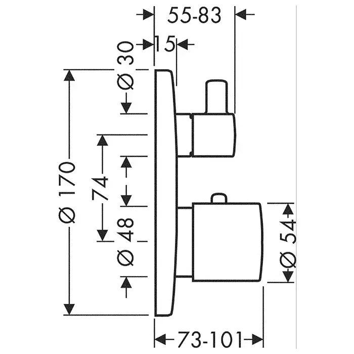 Axor Uno Термостат для ванны встраиваемый, 2 потребителя, внешняя часть, цвет: хром 38720000