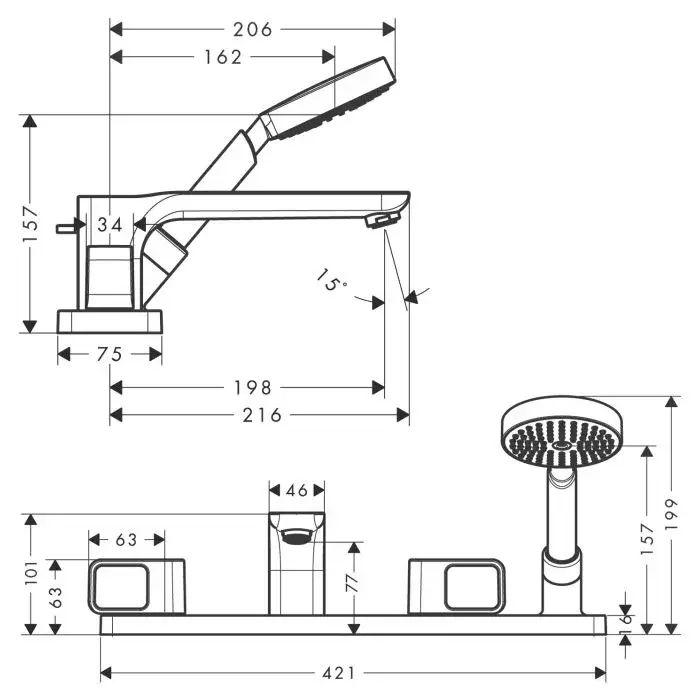 Axor Urquiola Смеситель на борт ванны, с ручным душем, внешняя часть, цвет: хром 11443000