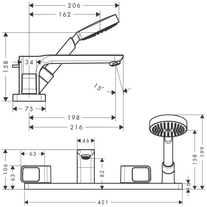 Axor Urquiola Смеситель на борт ванны, с ручным душем, внешняя часть, цвет: хром 11445000
