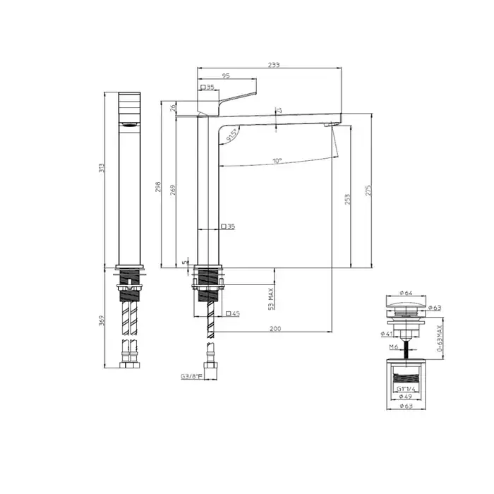 Bossini Aki Line Смеситель для раковины AKI-T высокий с донным клапаном 1"1/4 и гибкая подводка из нерж. стали 3/8"., цвет: хром