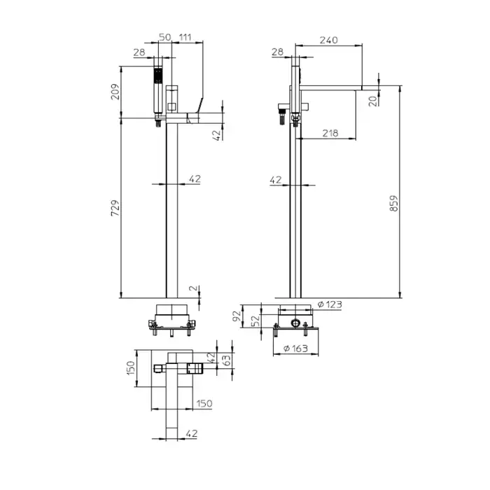 Bossini Aki Line Внешняя панель для ванной комнаты с колонной, настил пола AKI, лейка Cube, шланг из латуни 125 см. цвет: хром