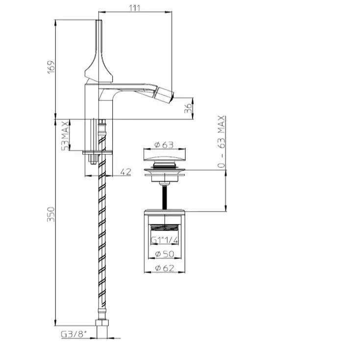 Bossini Aki Line Смеситель для биде AKI с донным клапаном 1"1/4 и гибкая подводка из нерж. Стали., цвет: хром
