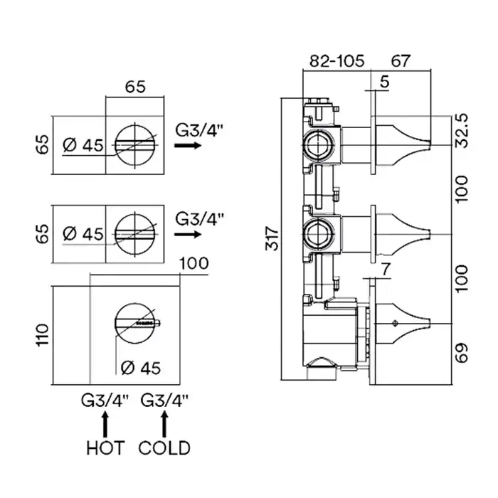 Bossini Apice Смеситель для душа встраиваемый, термостатический, 2 запорных вентиля, внешняя часть, цвет черный матовый
