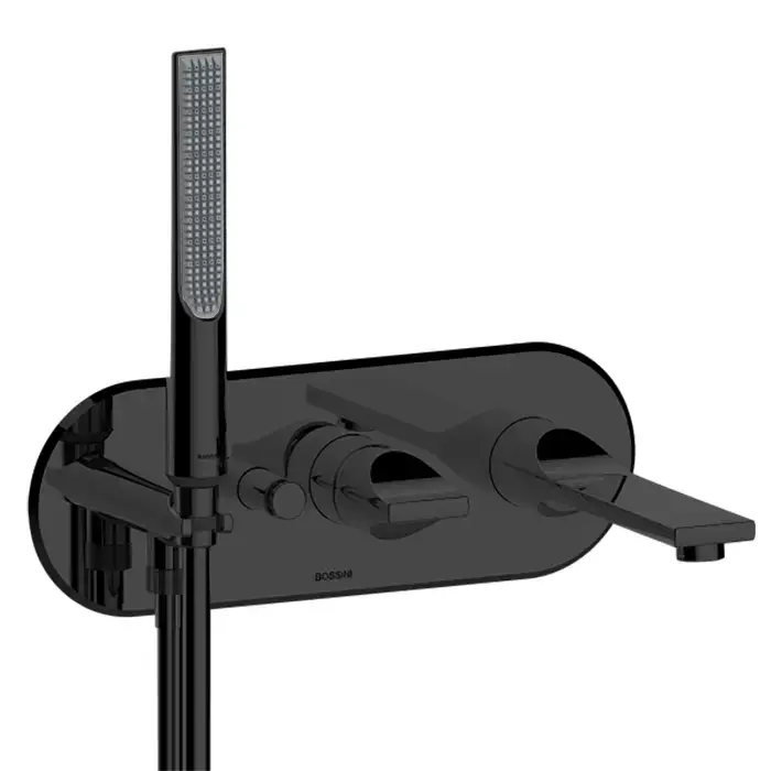 Bossini Apice Смеситель для ванны встраиваемый, однорычажный, с ручным душем Slim и шлангом 1500 мм., цвет: черный матовый