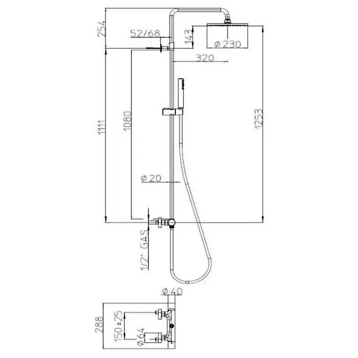 Bossini Cosmo Душевая система, настенная, цвет: черный матовый