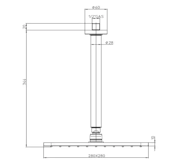 BOSSINI COSMO Верхний душ 280х280 мм., с потолочным держателем 300 мм, цвет черный матовый