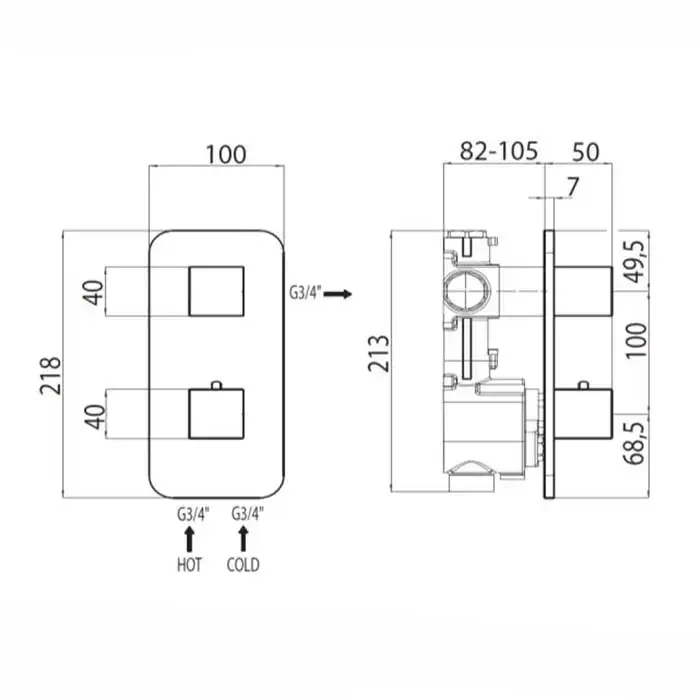Bossini Cube Термостат для душа, встраиваемый, с девиаторм/запорным вентилем на 1 или 2 выхода, уст-ка верт/гор., цвет: хром