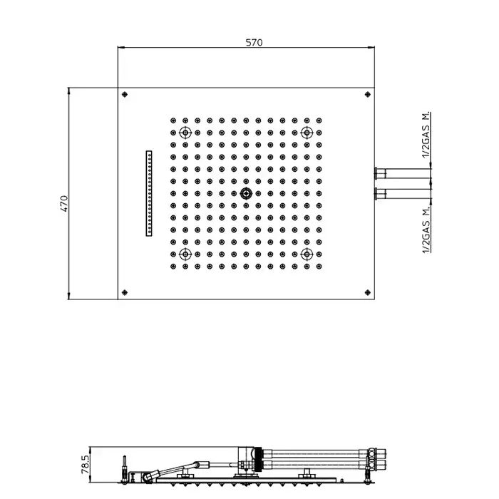 BOSSINI DREAM/2 Верхний душ 570 x 470 мм, с 4 LED RGB, 2 режима (дождь, водопад) блок питания/управления, Cromoterapia, цвет: хром