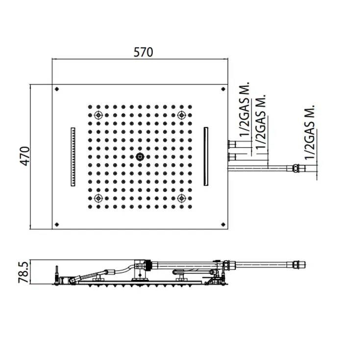 BOSSINI DREAM/3 Верхний душ 570 x 470 мм, 3 режима (дождь, каскад, водопад), с 4 LED (белый), блок питания/управления, цвет: хром