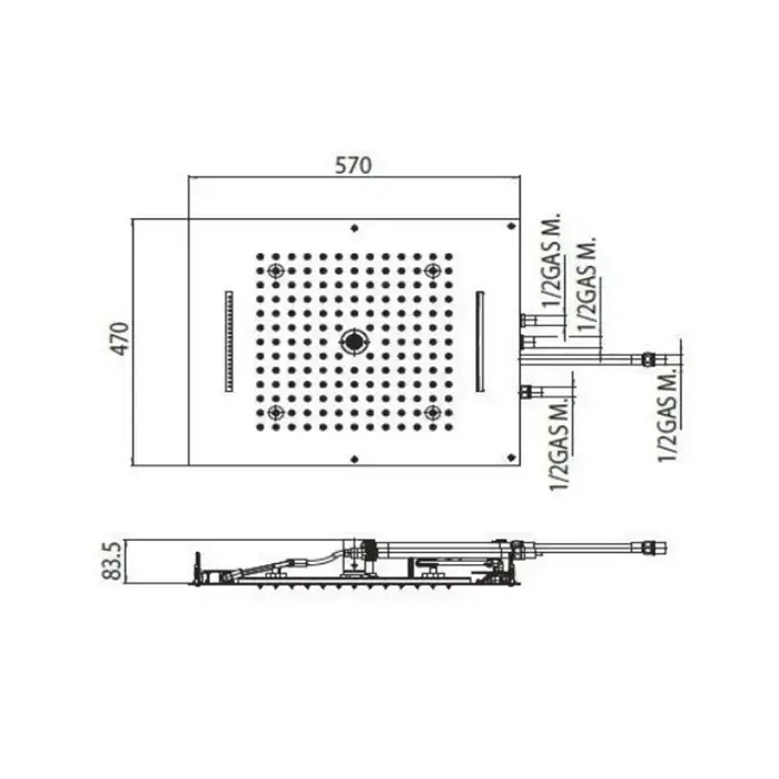 BOSSINI DREAM-RECTANGULAR Верхний душ 570x470 мм, с 12 LED RGB, блок питания/управления, Cromoterapia, цвет: хром