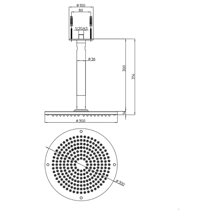 BOSSINI DREAM-OKI Верхний душ Ø 300 мм 1 режим - держателем вертикальным 300 x Ø 36 мм, цвет: хром