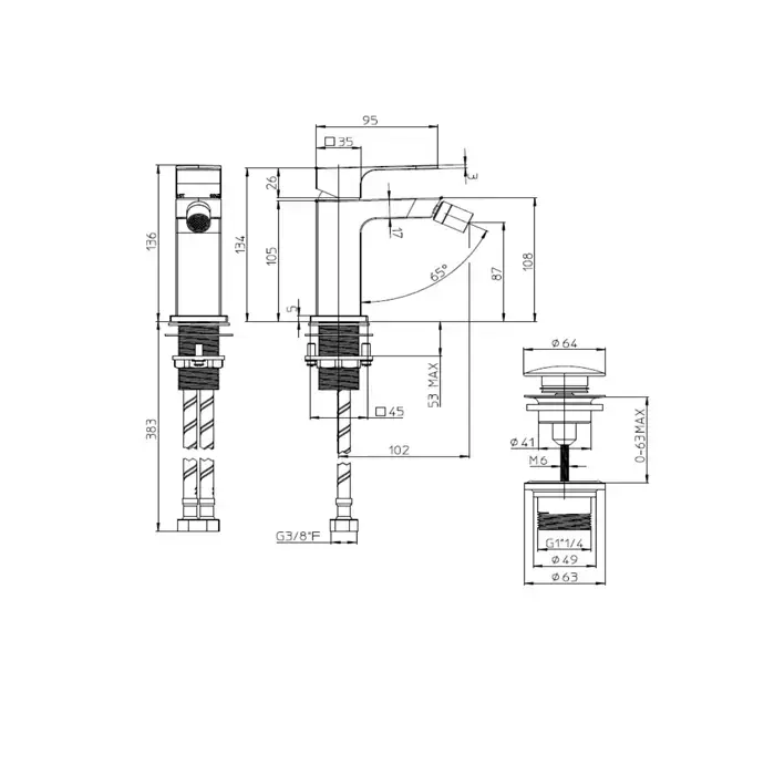 Bossini Gillo Наружная часть cмеситель монорычажного GILLO с изливом 18,5 см , без донного клапана, цвет: хром