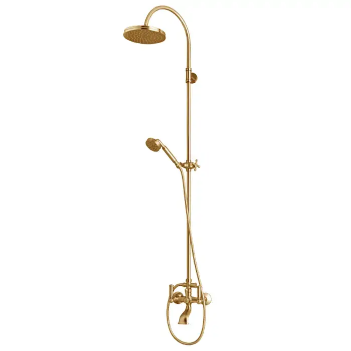 Bossini Liberty Душевая стойка, с верхним душем 21см, смесителем, со штангой и ручной лейкой , цвет: золото