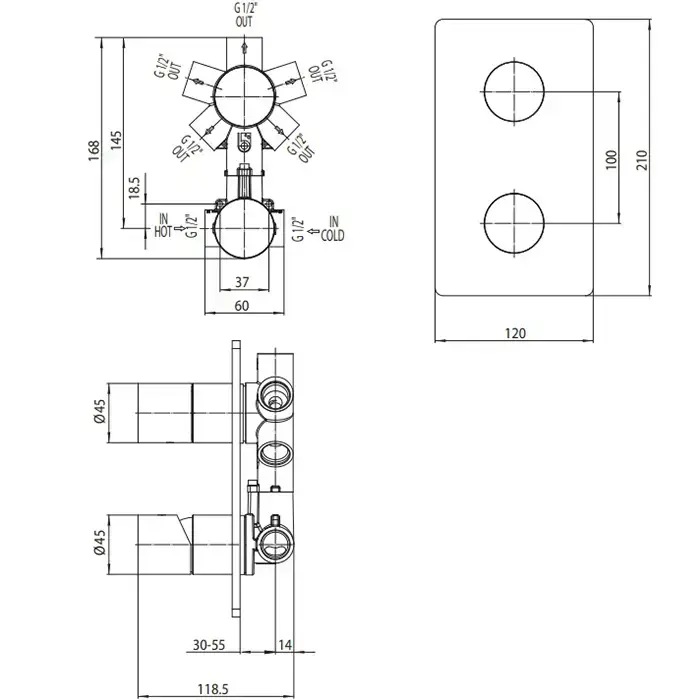 Bossini Liberty Смеситель для душа, встраиваемый, с переключателем на 5 источников, цвет: античная бронза