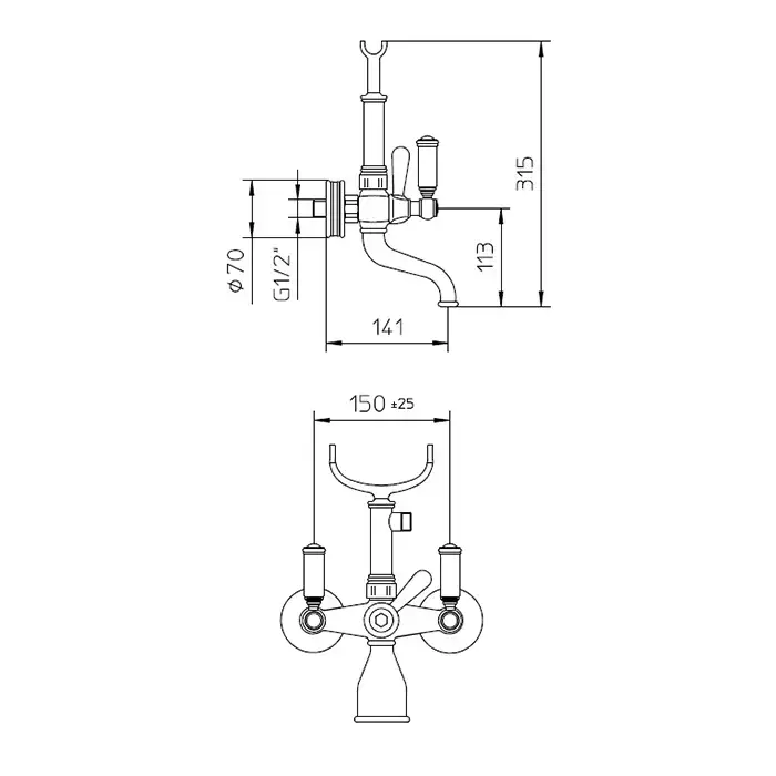 Bossini Liberty Смеситель для ванной, настенный, с ручным душем, цвет: античная бронза