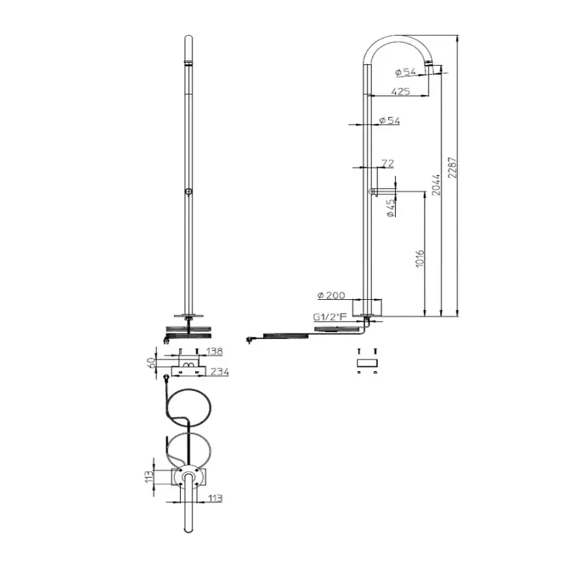 Bossini Pool Душевая колонна со смесителем и верхним душем, напольная, цвет: хром