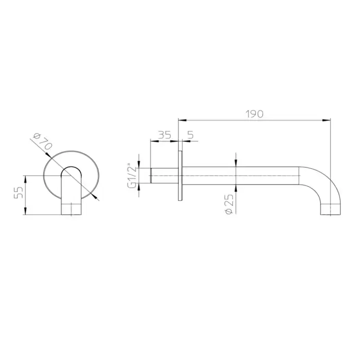 Bossini Nobu Настенный излив для ванны, Ø 25 мм, соединение 1/2"M.190 мм, цвет: нержавеющая сталь