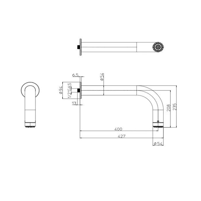 Bossini Nobu Настенный кронштейн из нерж.стали Ø 54мм с фиксированной душевой лейкой, самоочи. с дождевой струей., цвет: нержавеющая сталь