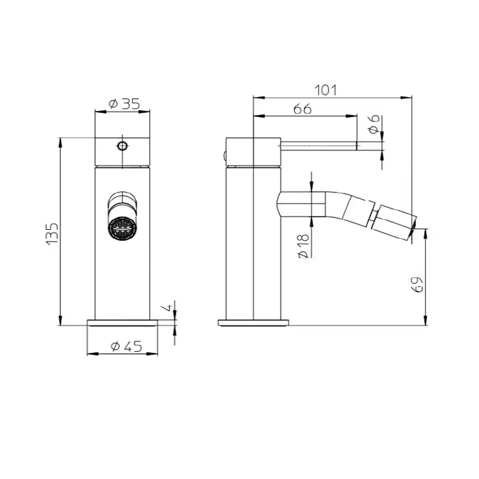 Bossini Nobu Смеситель для биде, без донного клапана, c гибкой подводкой из нерж стали., цвет: нержавеющая сталь