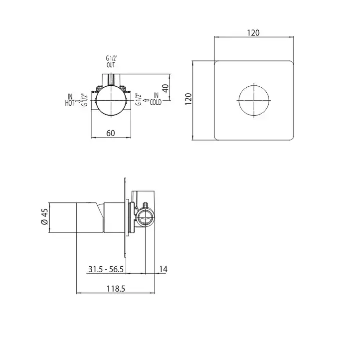 Bossini Nobu Внешняя часть для монорычажного встраиваемого смесителя на 1 выход., цвет: нержавеющая сталь