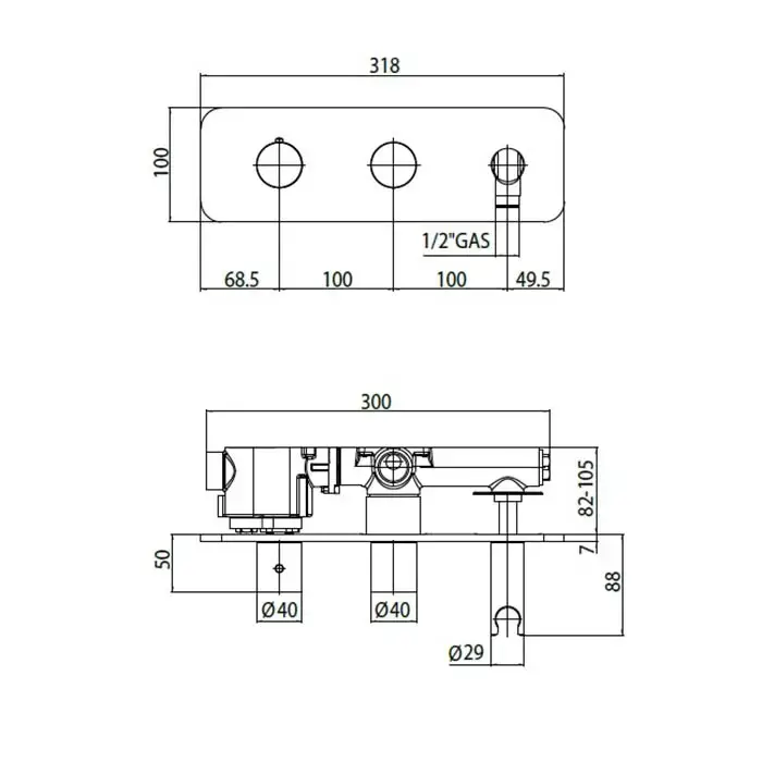 Bossini Oki Комплект: Термостат высокой пропускной способности с девиатором на 2 выхода и держателем с водорозеткой, подключение на 3/4", цвет: хром