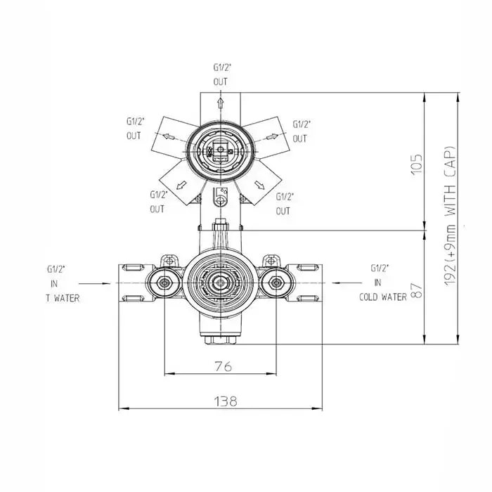 Bossini Oki Термостат для душа, встраиваемый, с девиаторм 1/2/3/4/5, цвет: золото