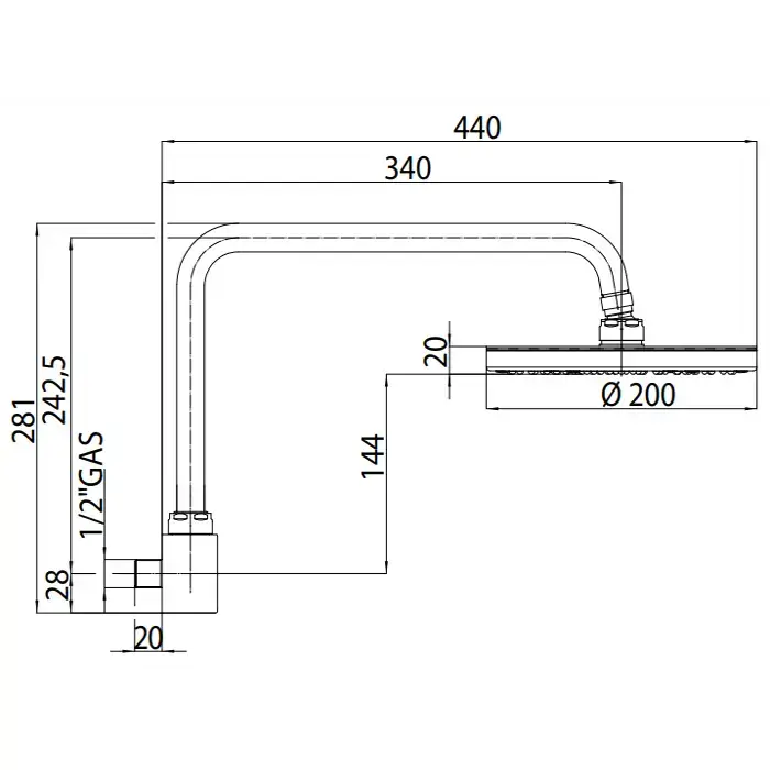 Bossini Oki Верхний душ 20см., настенный, с поворотной рукояткой 28.1см., цвет: хром