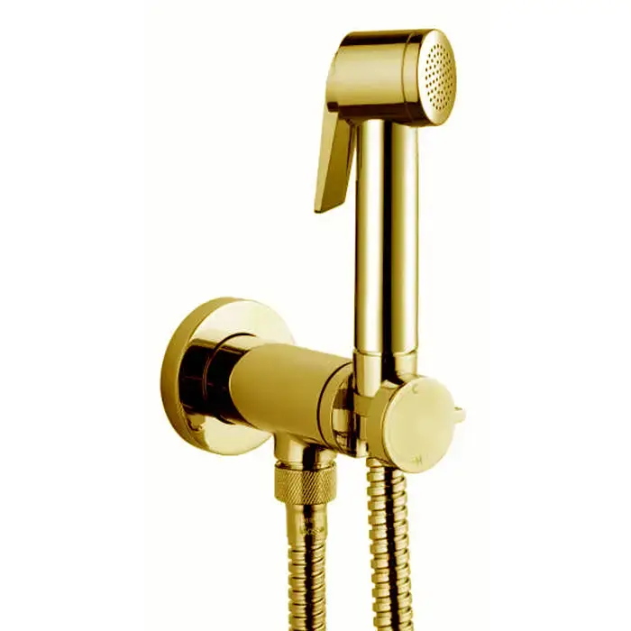 Bossini Paloma Flat Комплект гигиенический: прогрессивный смеситель, лейка с клапаном подачи воды, шланг 125см, цвет: золото